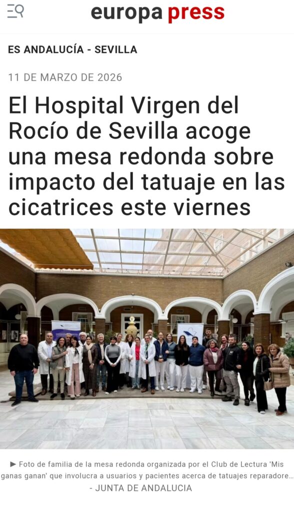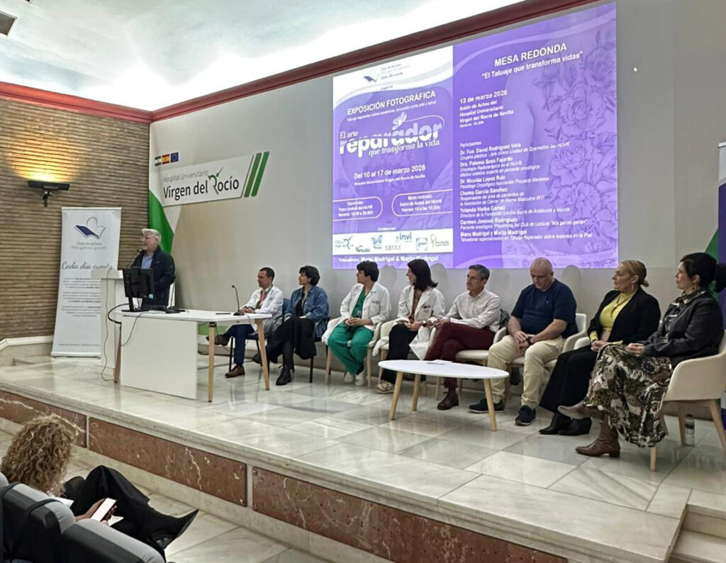 Se celebró una mesa redonda el viernes 13 de marzo a las 10:30 h en el Salón de Actos del Hospital Virgen del Rocío de Sevilla, donde se habó sobre el impacto del tatuaje reparador sobre lesiones en la piel.